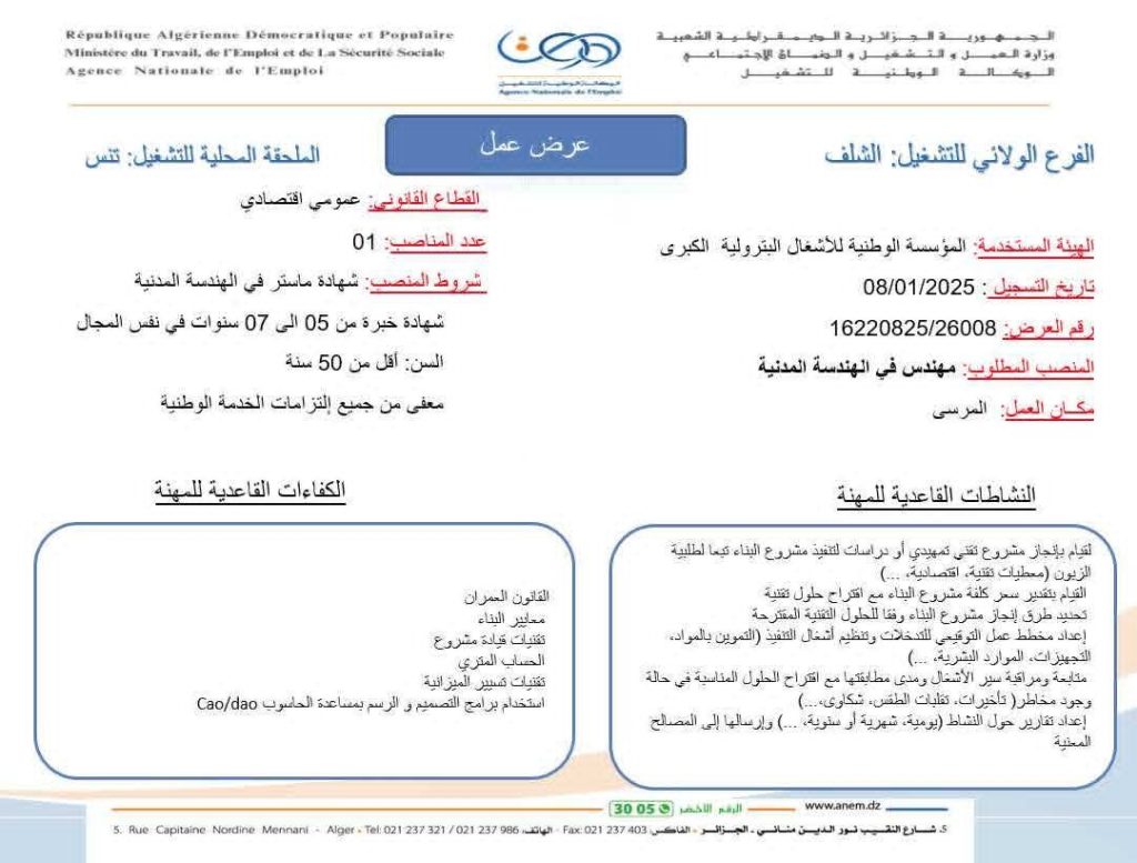 • الشروط المطلوبة: شهادة ماستر في الهندسة المدنية + خبرة من 05 إلى 07 سنوات في نفس المجال.
