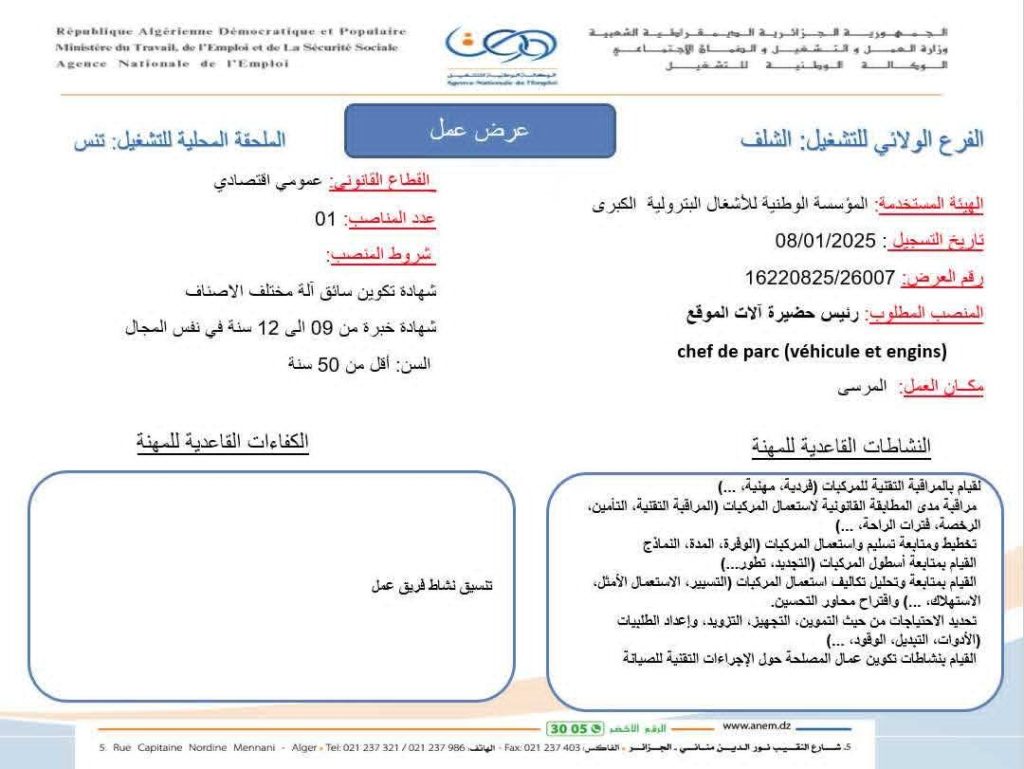 • الشروط المطلوبة: شهادة تكوين سائق آلة مختلف الأصناف + خبرة من 09 إلى 12 سنة في نفس المجال.