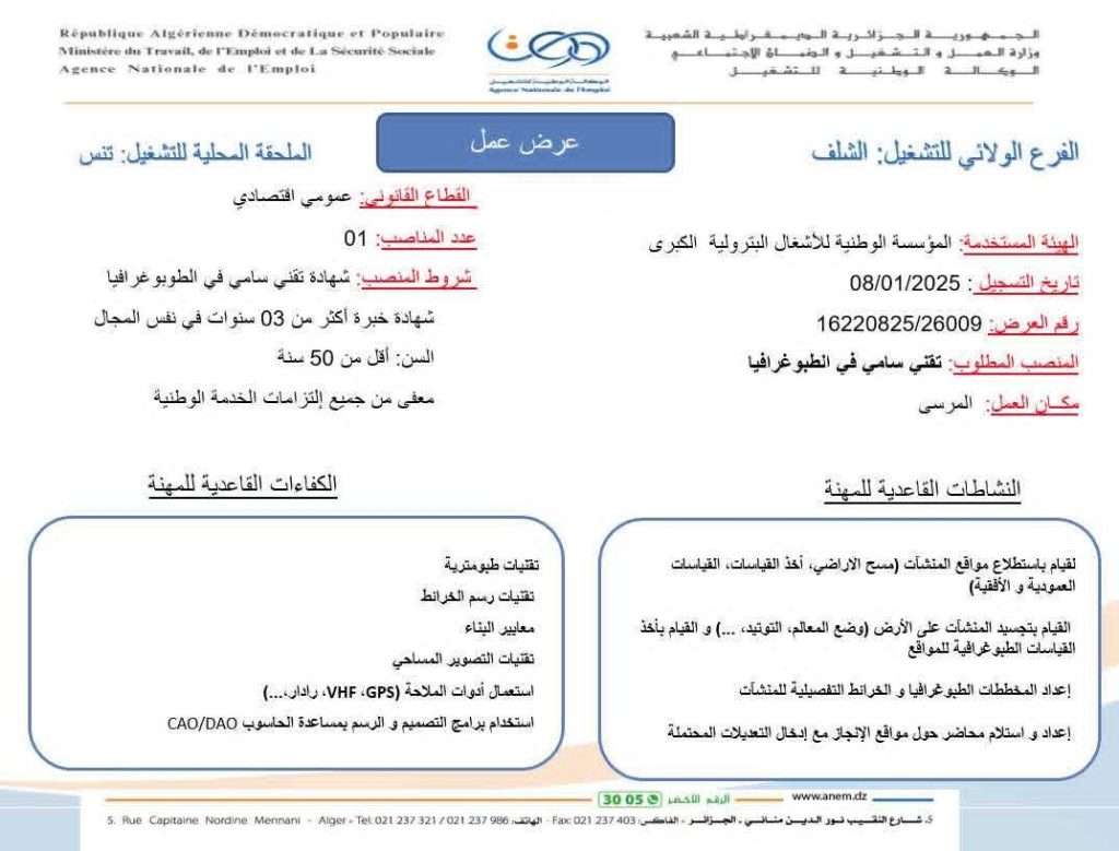 • الشروط المطلوبة: شهادة تقني سامي في الطبوغرافيا + خبرة أكثر من 03 سنوات في نفس المجال.