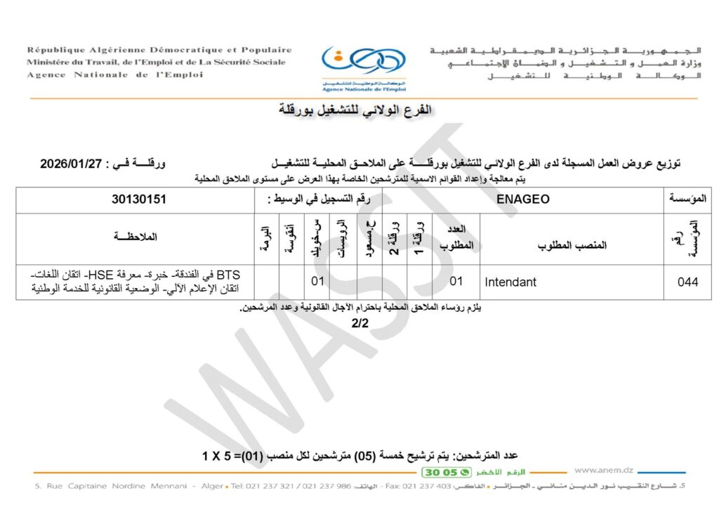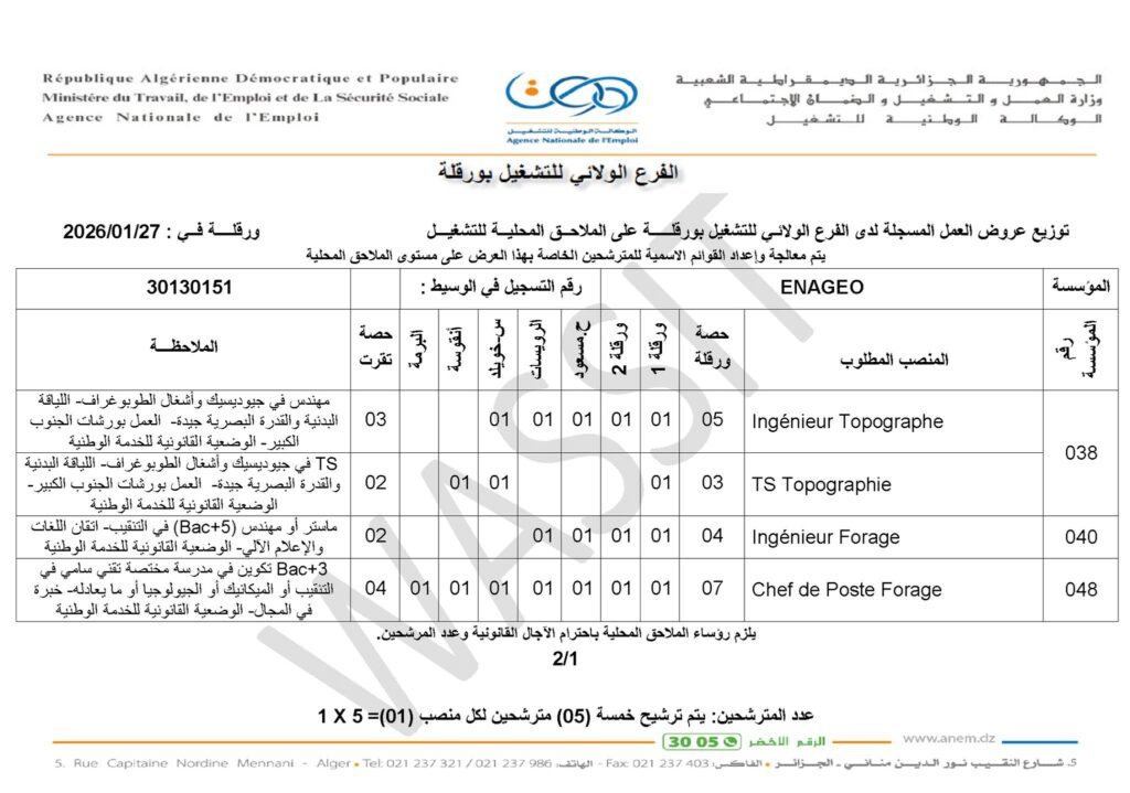 • تاريخ الإعلان: ورقلة في 27/01/2026