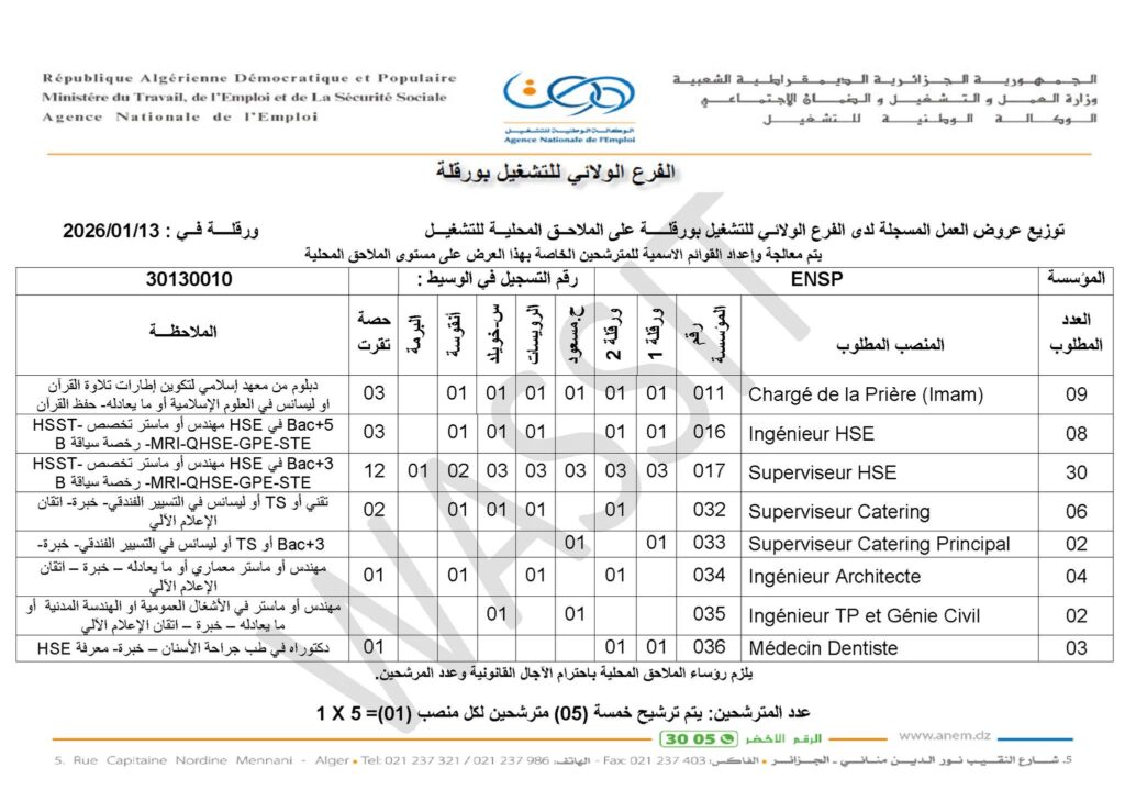 المؤسسة الوطنية للخدمات في الآبار ENSP تابعة لشركة سوناطراك تفتح باب التوظيف (56 منصب)