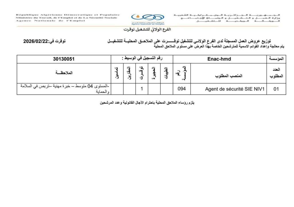 توزيع عروض العمل المسجلة لدى الفرع الولائي للتشغيل توقرت على الملاحق المحلية للتشغيل