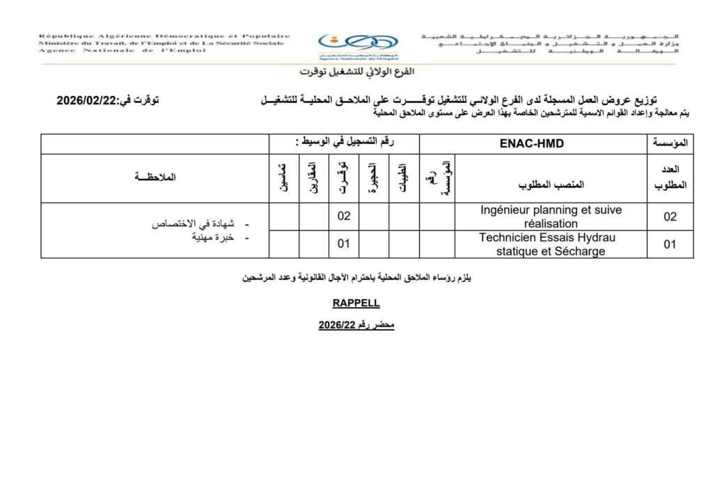 المؤسسة الوطنية للقنوات ENAC تعلن عن فتح باب التوظيف في عدة تخصصات