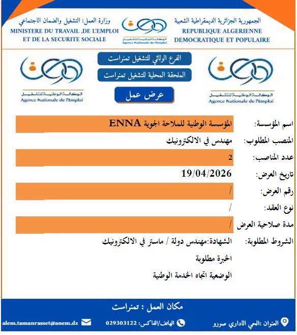 المؤسسة الوطنية للملاحة الجوية ENNA تعلن عن توظيف مختلف المناصب
