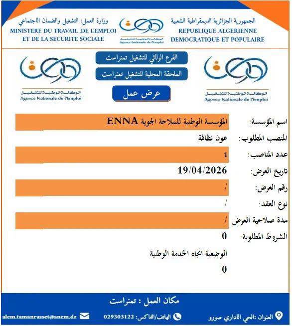اسم المؤسسة: المؤسسة الوطنية للملاحة الجوية ENNA