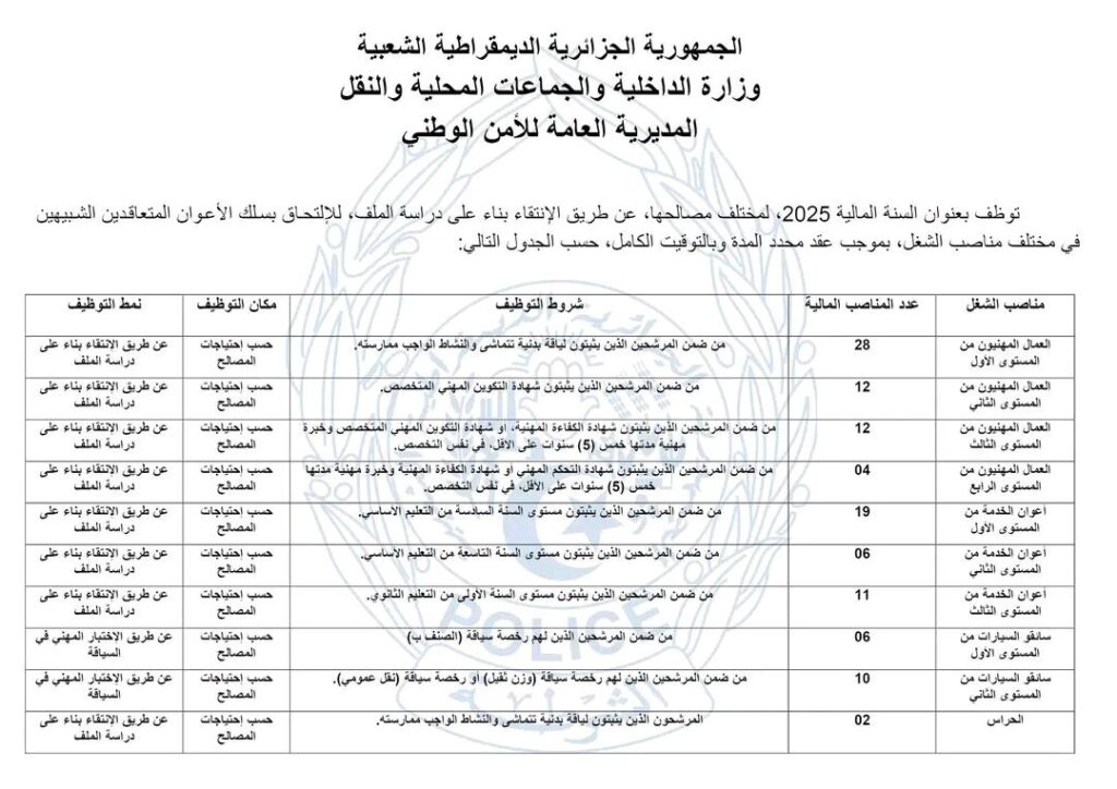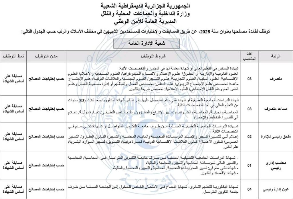 المديرية العامة لـ #الأمن_الوطني : مسابقتين لتوظيف المستخدمين الشبيهين والأعوان المتعاقدين الشبيهين