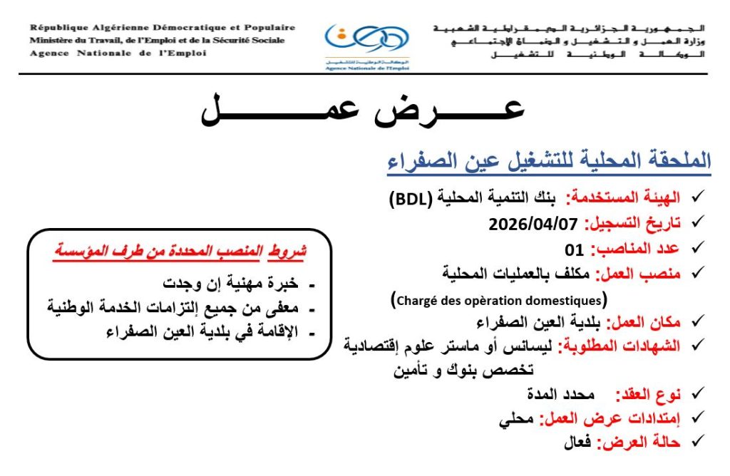 منصب العمل: مكلف بالعمليات المحلية (Chargé des opèration domestiques)