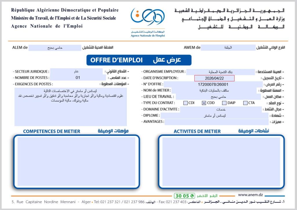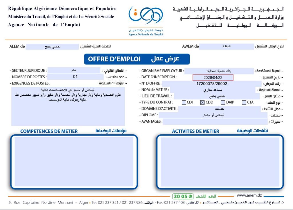 إليك استخراج البيانات الواردة في صورتي عروض العمل الصادرتين عن الوكالة الوطنية للتشغيل (ANEM):
