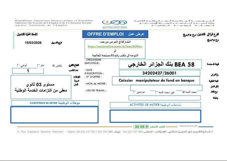 الهيئة المستخدم BEA 58 بنك الجزائر الخارجي