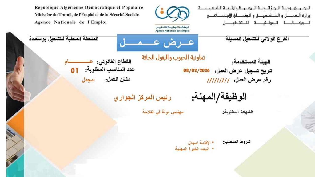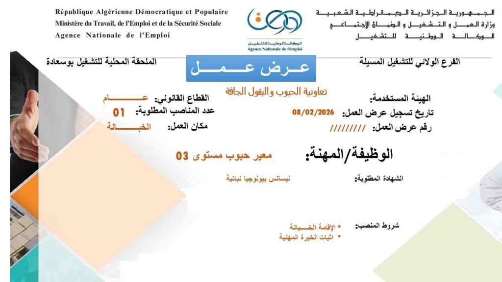 تاريخ تسجيل عرض العمل: 08/02/2026