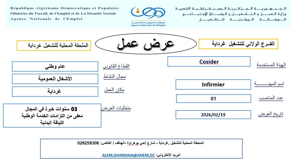 | Infirmier (ممرض) | 01 | 2026/02/19 |