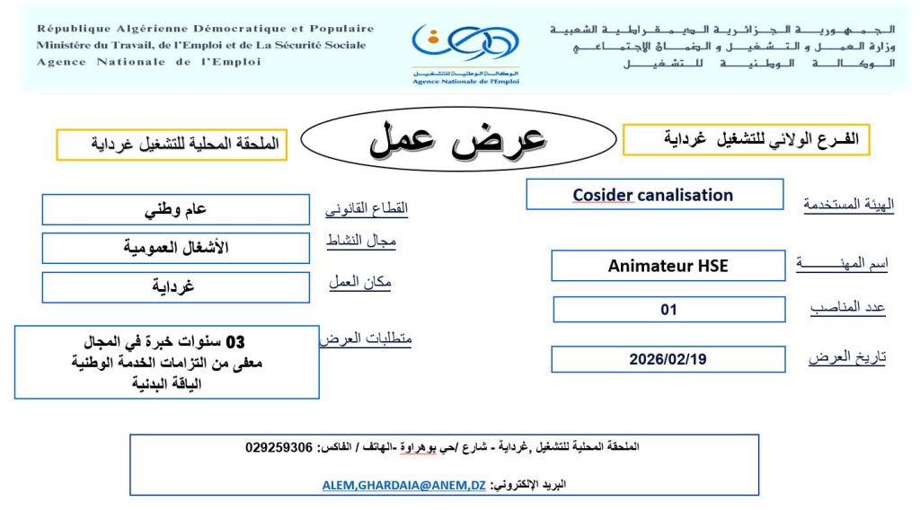| Animateur HSE (منشط السلامة والبيئة) | 01 | 2026/02/19 |
