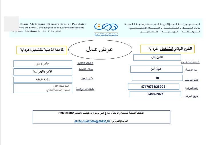 توظيف اعوان أمن في مؤسسة الأمين قارد