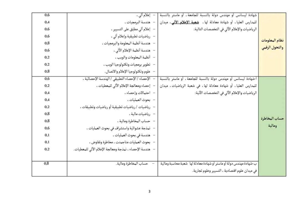 المسابقة مفتوحة لكل المترشحين الحاصلين على شهادات في ميادين الرياضيات، الإعلام الآلي، الإحصاء، علوم التسيير، المحاسبة والمالية.