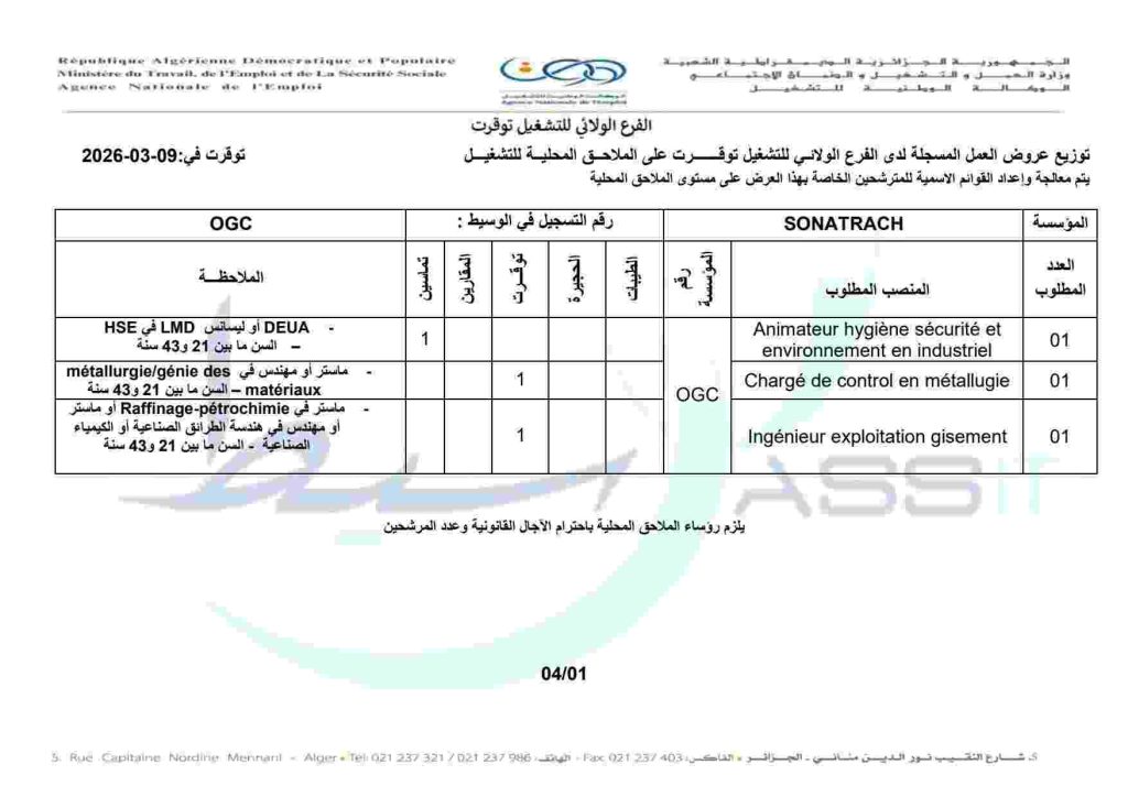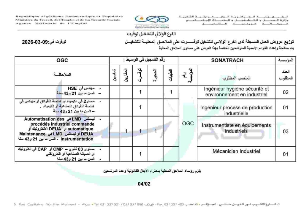 SONATRACH Technicien Exploitation 07 – DEUA أو ليسانس LMD في هندسة الطرائق الصناعية