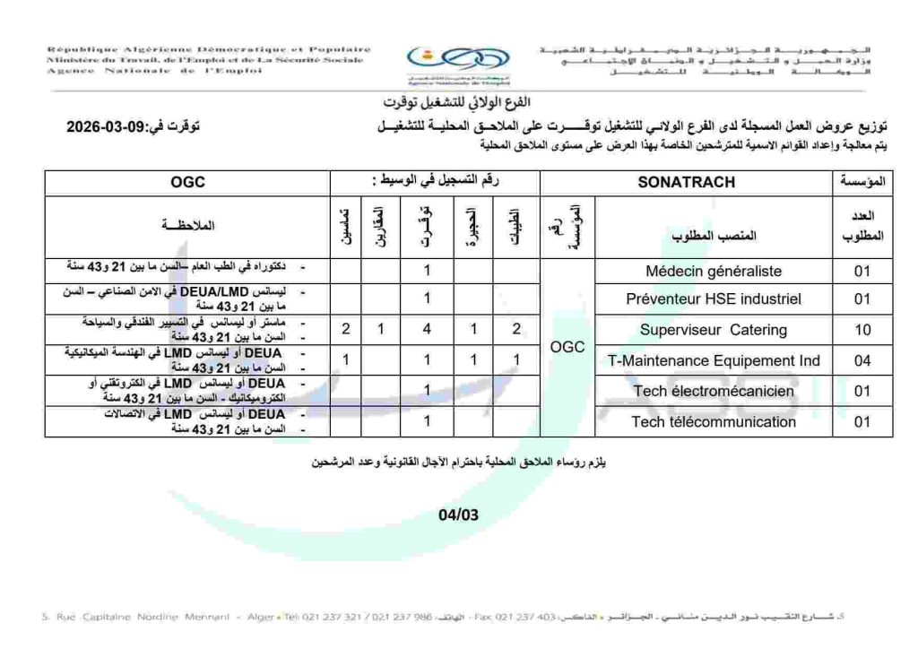 توزيع عروض العمل المسجلة لدى الفرع الولائي للتشغيل توقرت على الملاحق المحلية للتشغيل