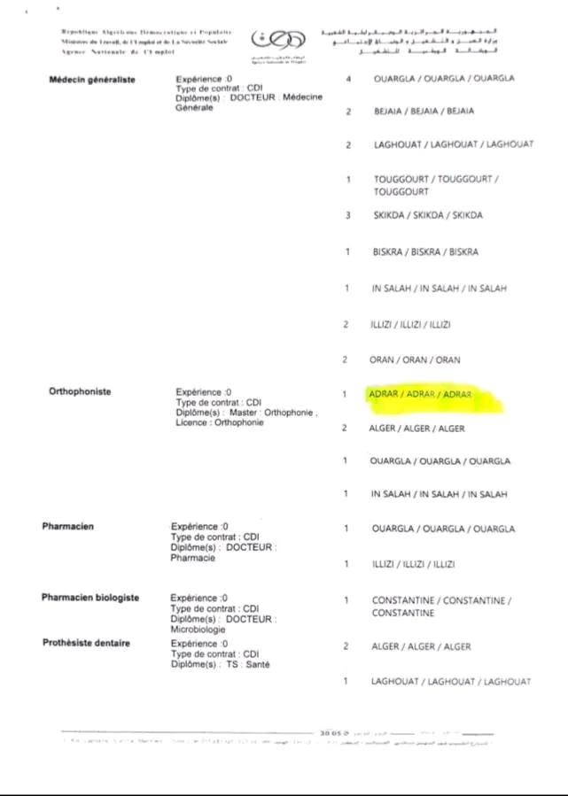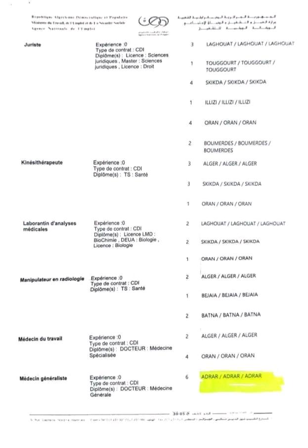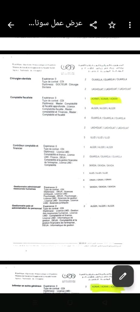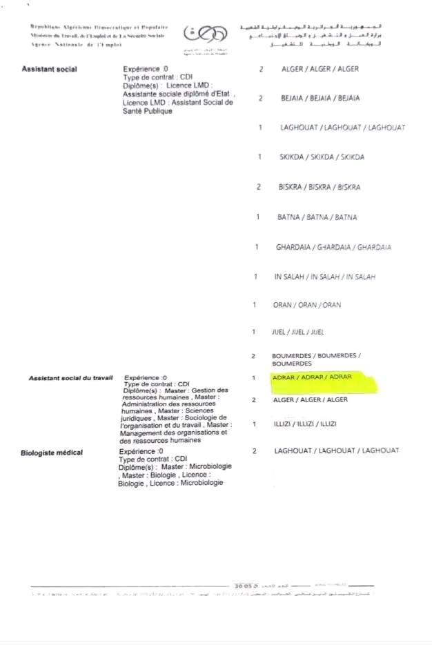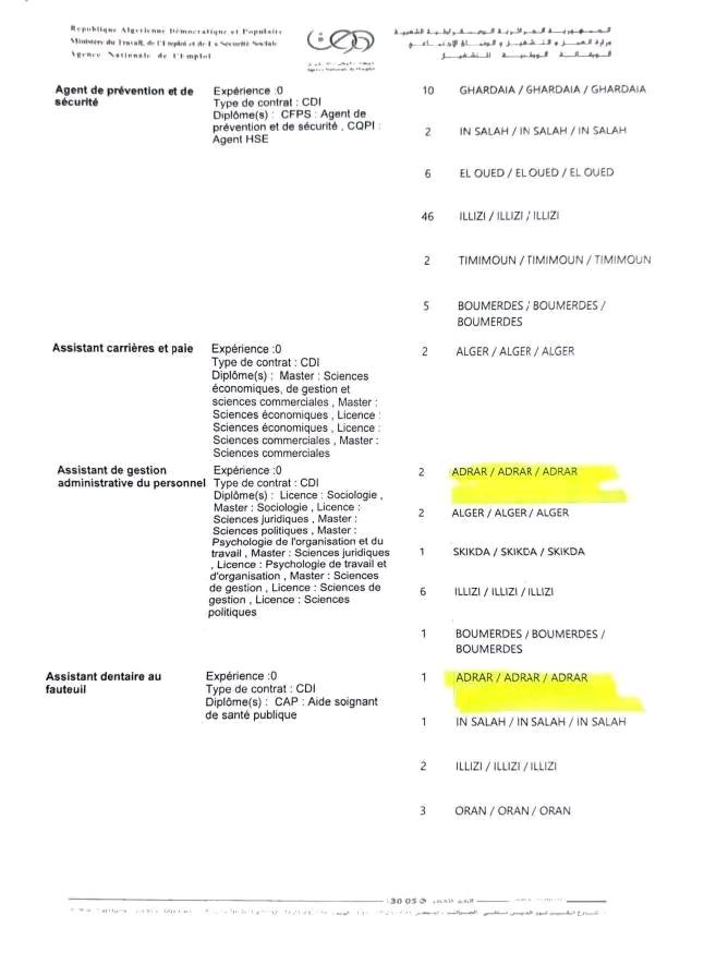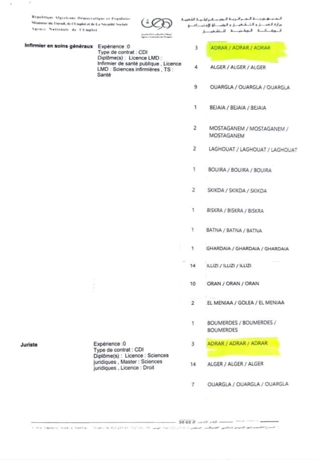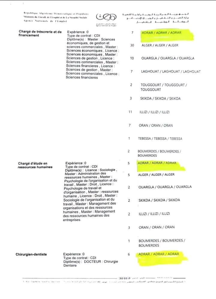 • أماكن العمل: أدرار، ورقلة، الأغواط