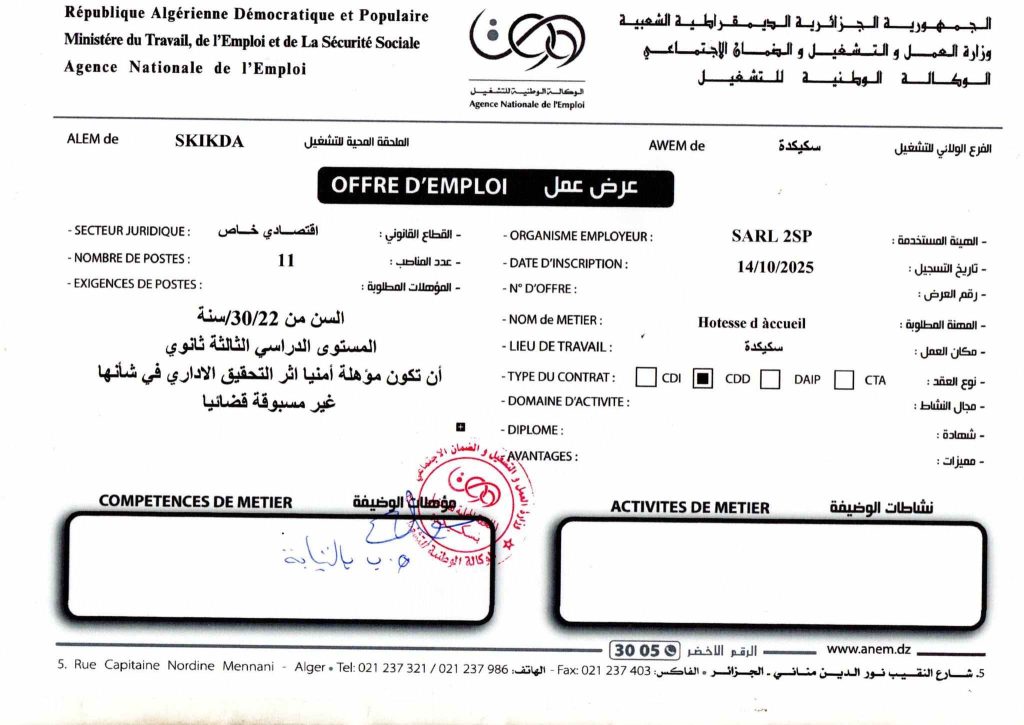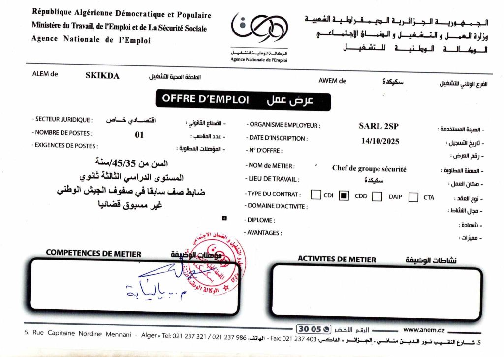 الهيئة المستخدمة: SARL 2SP