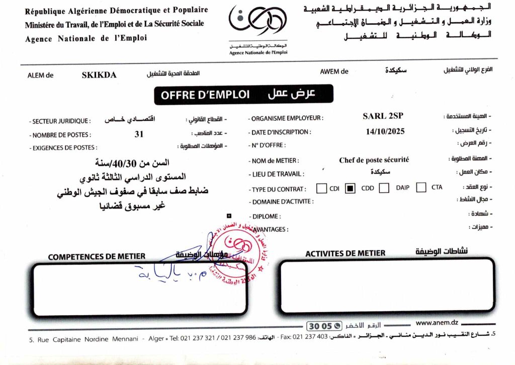 مكان العمل: سكيكدة