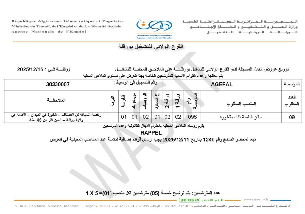 • تاريخ الإعلان بورقلة: 16/12/2025