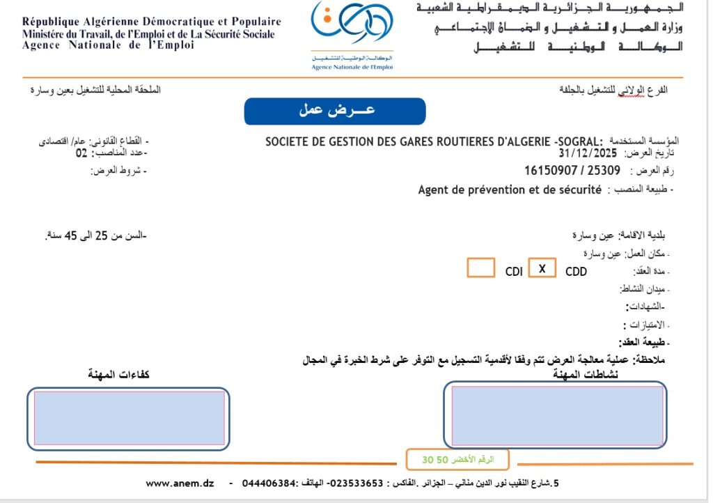 المؤسسة المستخدمة: SOCIETE DE GESTION DES GARES ROUTIERES D’ALGERIE – SOGRAL.