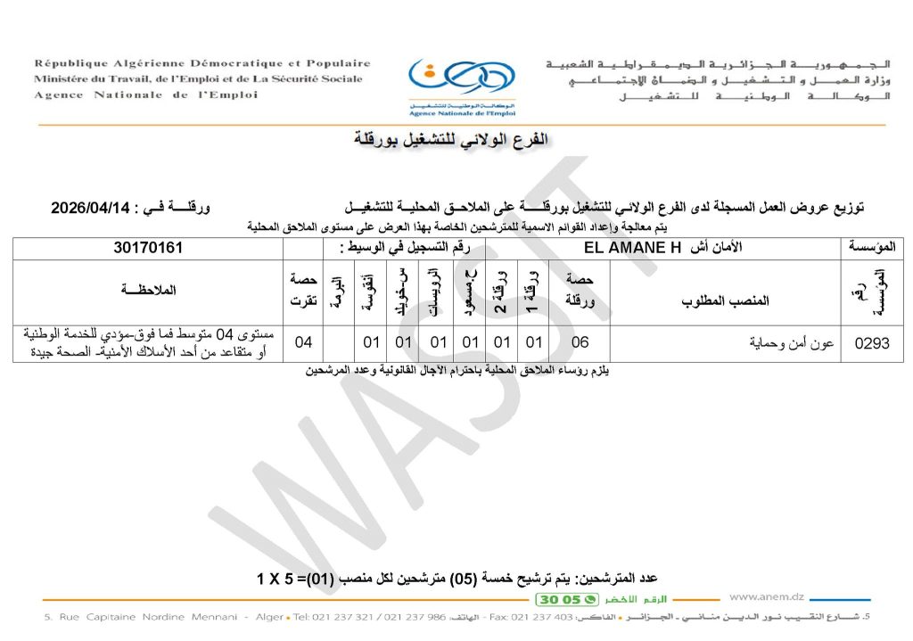 | الأمان أش EL AMANE H | المنصب المطلوب | حصة ورقلة |