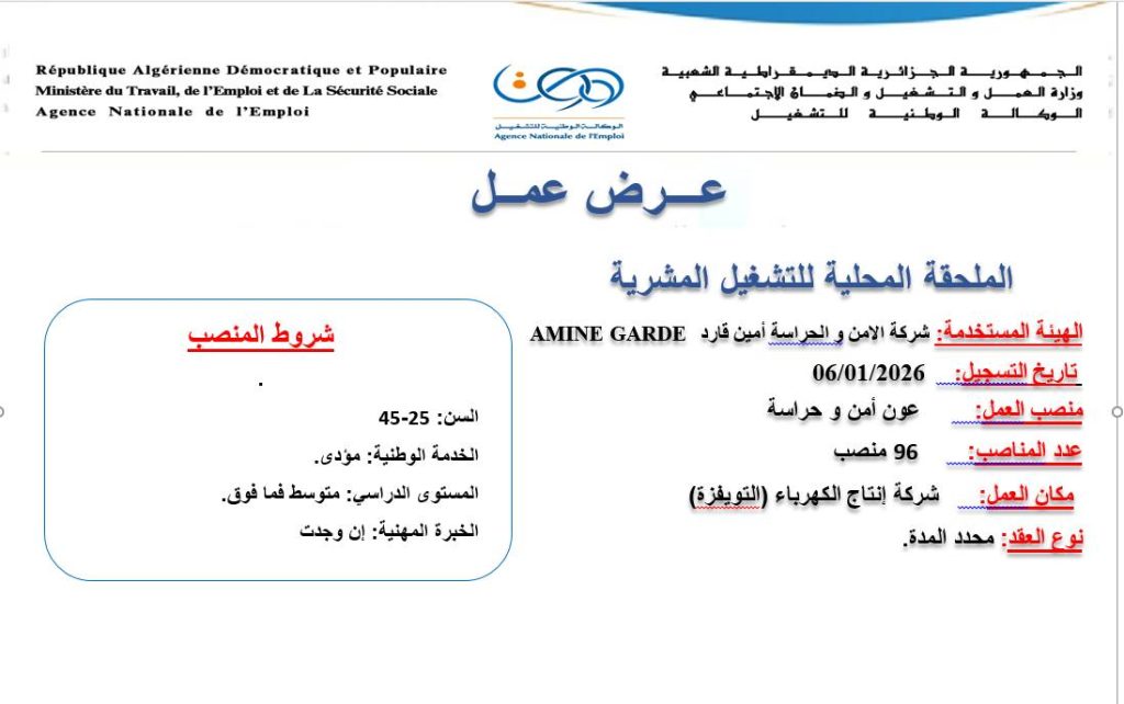 شركة الأمن والحراسة أمين قارد تفتح باب توظيف (102 عون أمن)