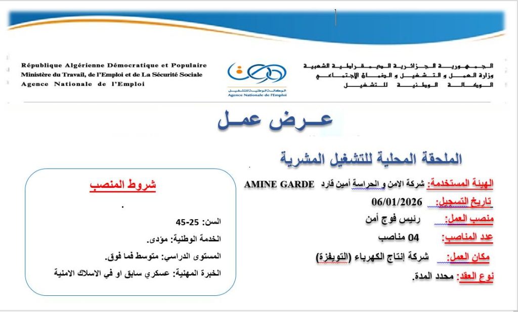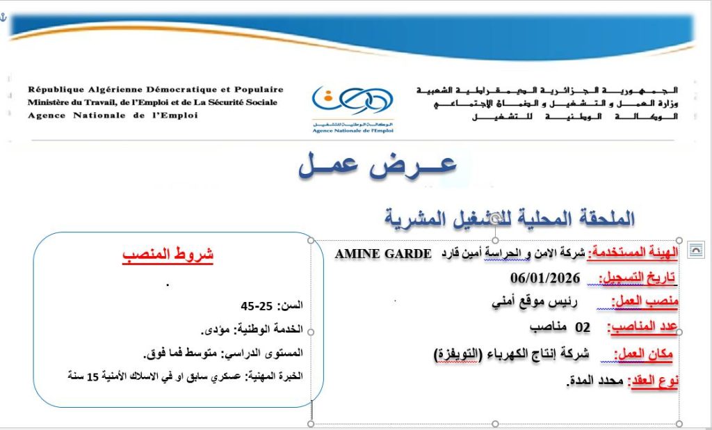 شركة الأمن والحراسة أمين قارد تفتح باب توظيف (102 عون أمن)