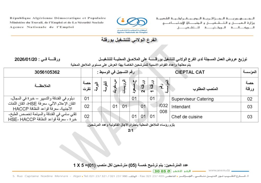 شركة الفندقة والاطعام سبيتال تعلن عن توظيف في مختلف التخصصات