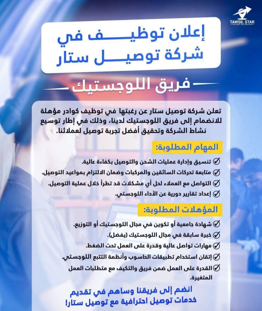 شركة توصيل ستار تعلن عن حاجتها لتوظيف:نبحث عن فريق محترف و اشخاص ذات خبرة