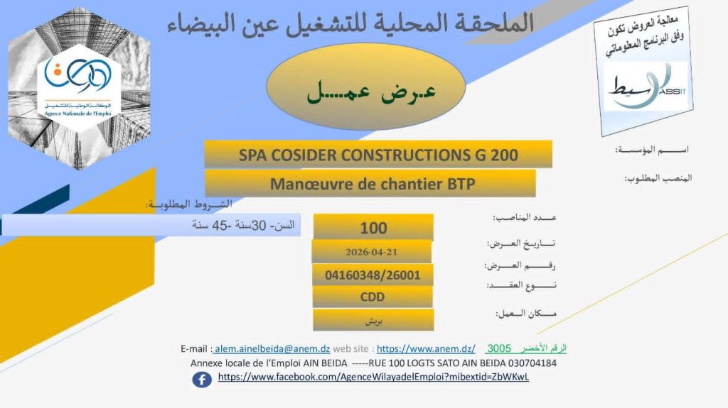 البريد الإلكتروني: alem.ainelbeida@anem.dz