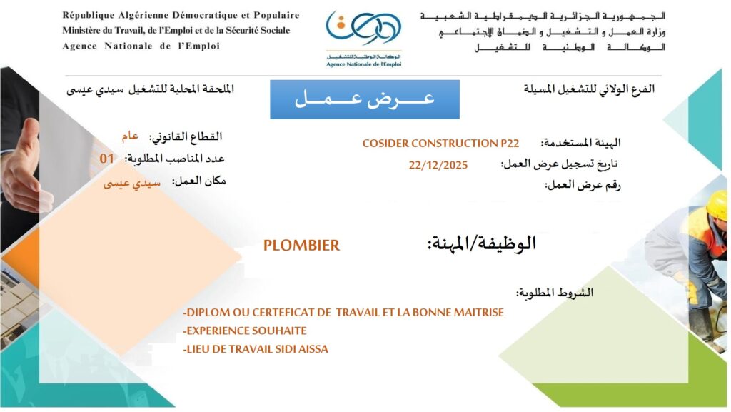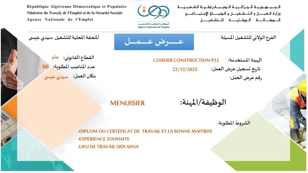 شركة كوسيدار تعلن عن فتح في مناصب عمل بولاية الجلفة والمسيلة في التخصصات التالية