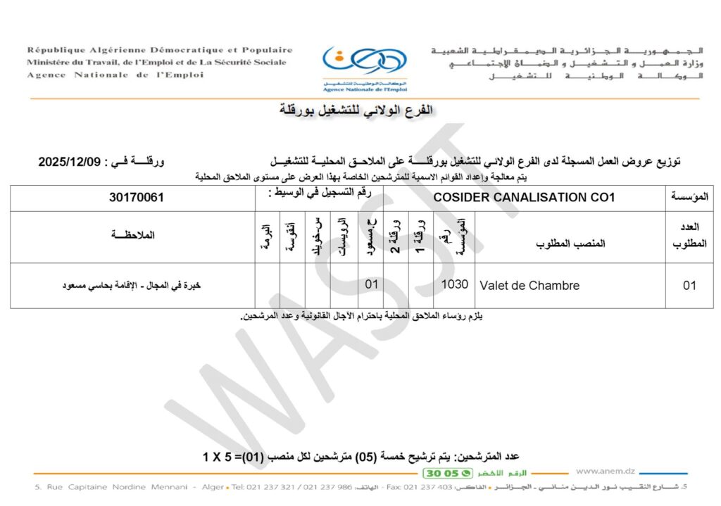 الإعلان الثاني: شركة COSIDER CANALISATION CO1