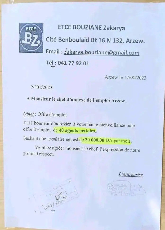 تعلن شركة خاصة بوهران أرزيو عن احتياجتها لعمال نظافة براتب 20.000.00 دج