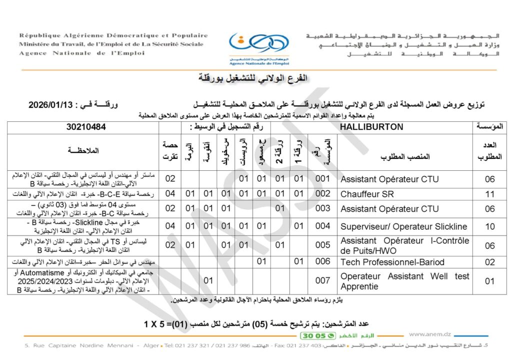 شركة هاليبرتون الأمريكية تعلن عن فتح مناصب عمل في حاسي مسعود