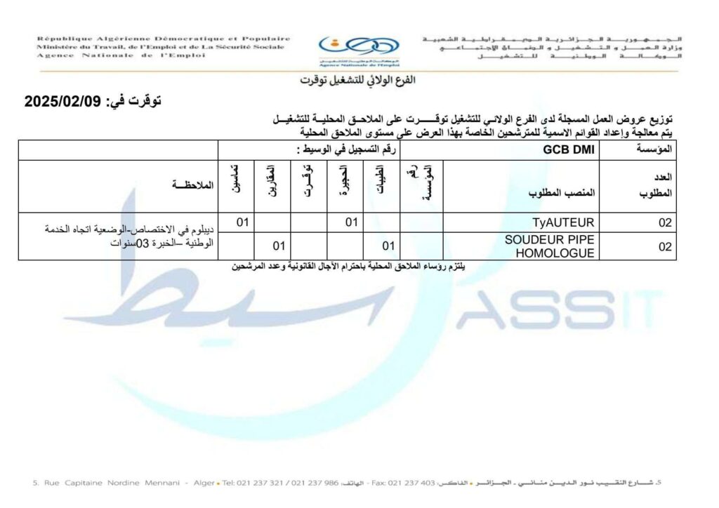 تعلن الشركة الوطنية للهندسة المدنية والبناء GCB عن فتح مناصب عمل في التخصصات التالية