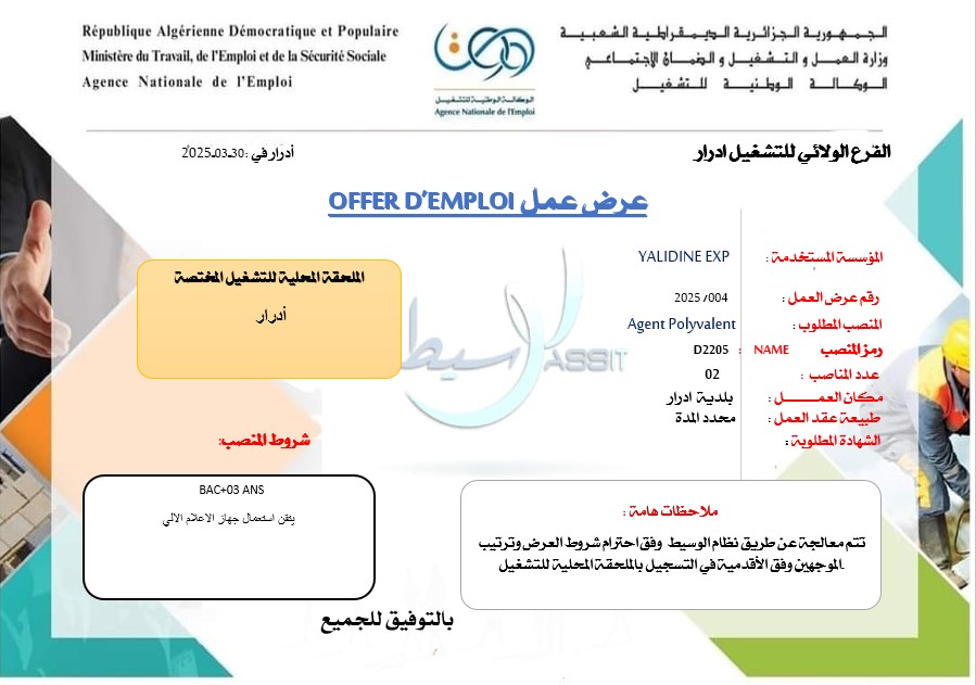 تتم معالجة عرض العمل عبر نظام الوسيط وفق احترام شروط العرض وترتيب المترشحين حسب الأقدمية في التسجيل بالملحقة المحلية للتشغيل المختصة.
