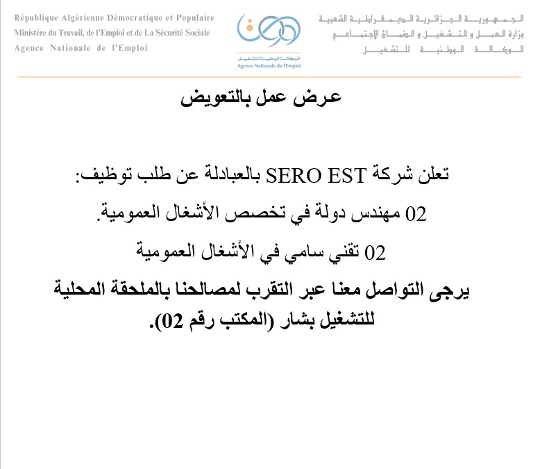عرض توظيف في شركة الدراسات وانجاز الفنية للشرق Sero est