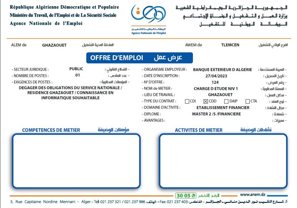 تعلن وكالة التشغيل تلمسان عن فتح عروض عمل بالصندوق الوطني للتوفير والاحتياط وبنك الجزائر الخارجي