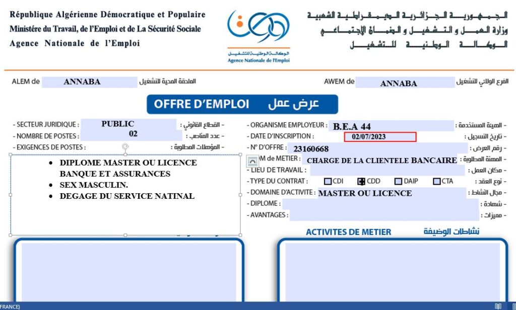 عرض عمل ببنك الجزائر الخارجي عنابة BEA 44