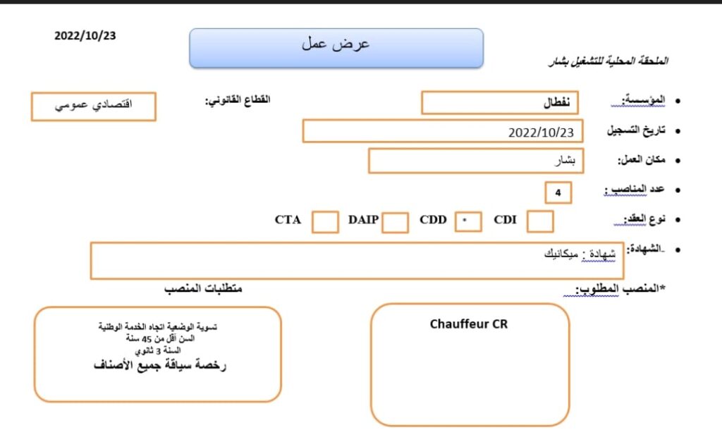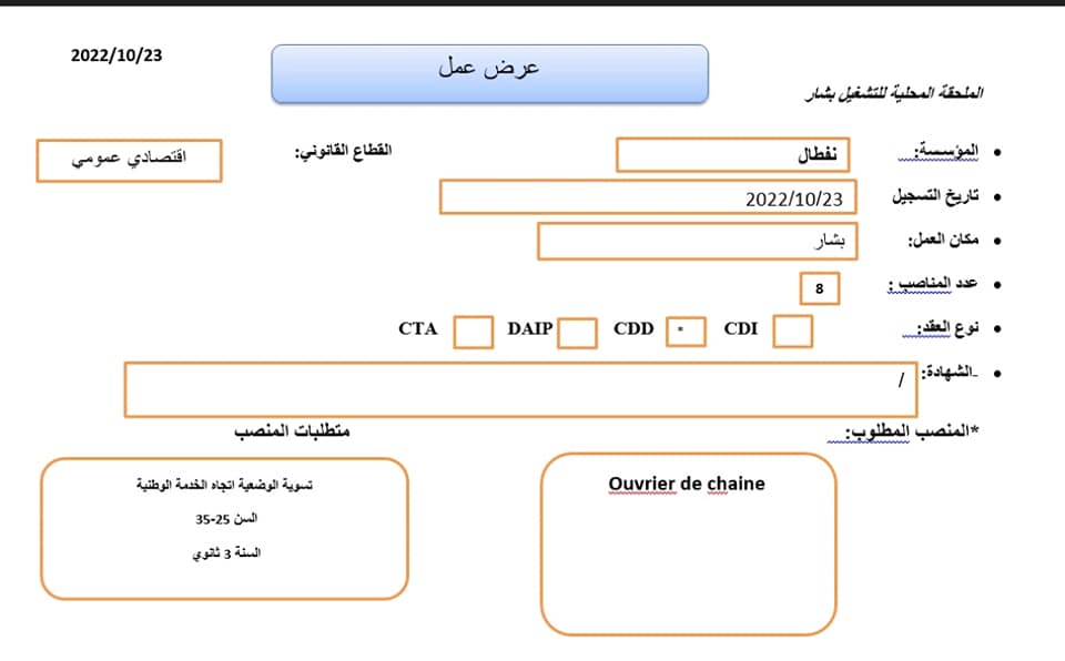 تعلن شركة نفطال عن فتح عرض عمل بولاية بشار في التخصصات التالية