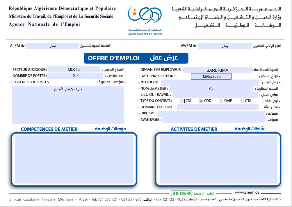 عرض عمل بشركة SARL KIMA للبناء 50 منصب