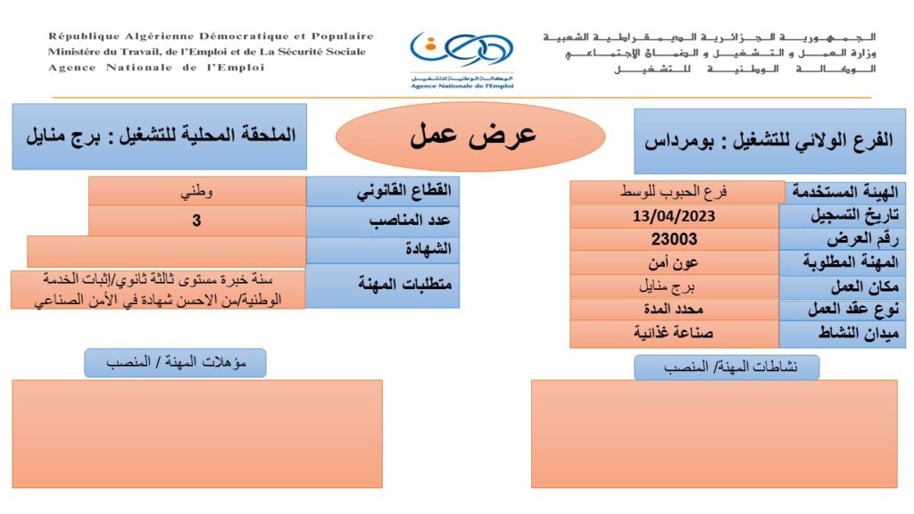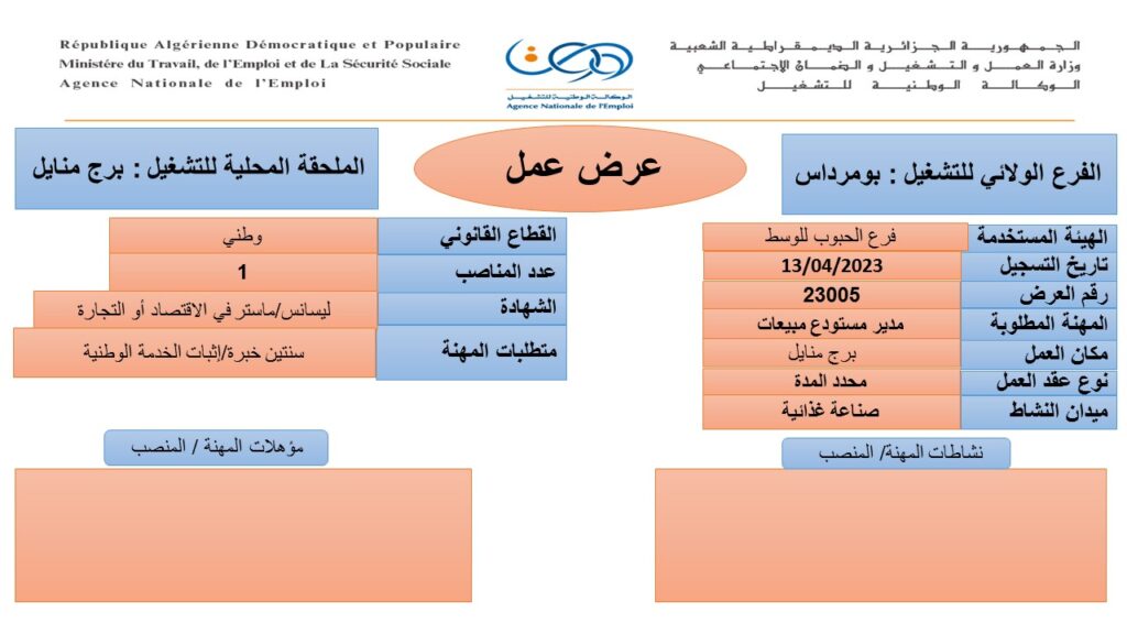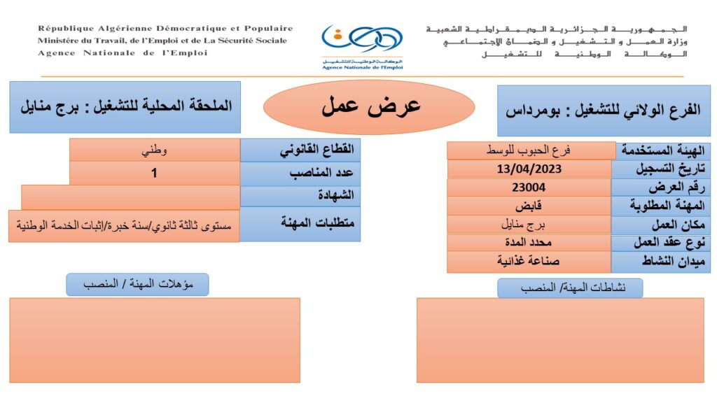 عرض عمل بفرع الحبوب للوسط بومرداس