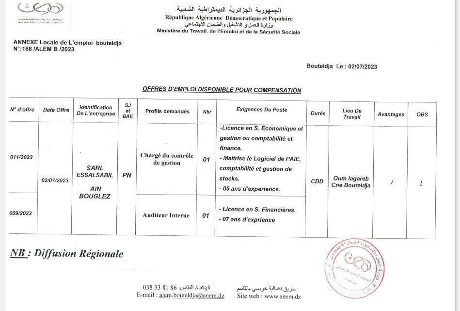 تعلن مؤسسة سلسبيل بوقلاز بوثلجة خنشلة عن فتح عرض عمل في الاختصصات المطلوبة