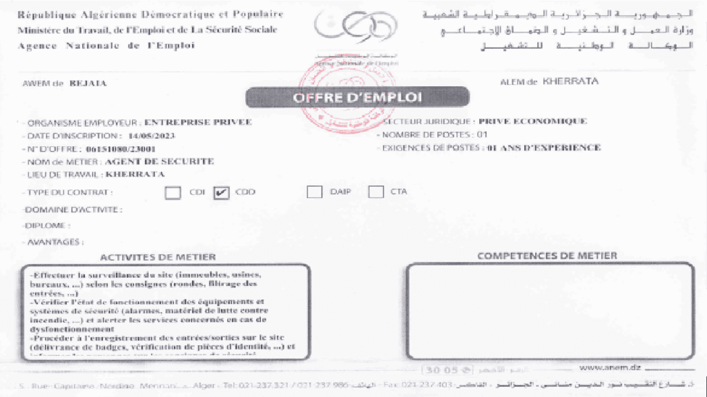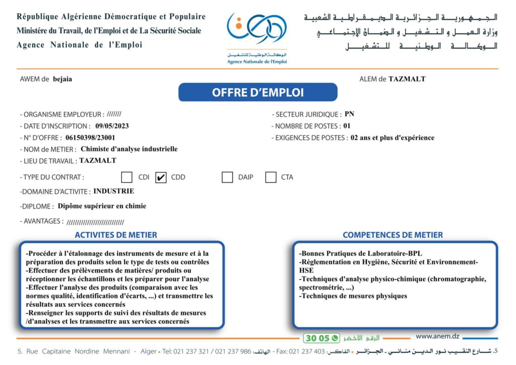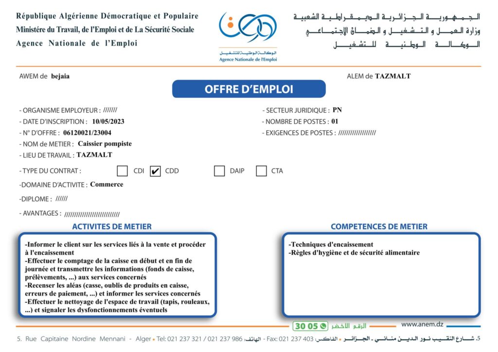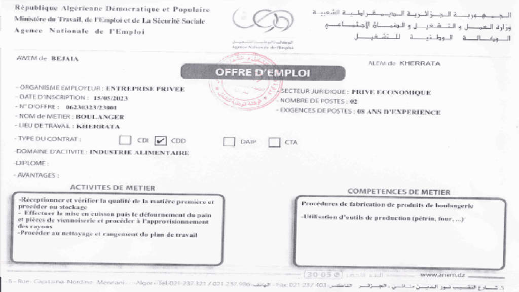 أعلنت وكالة التشغيل بجاية عن فتح عديد مناصب عمل المطلوبة