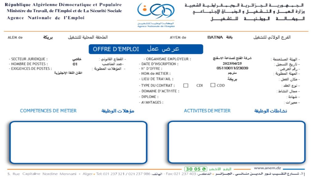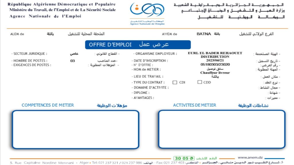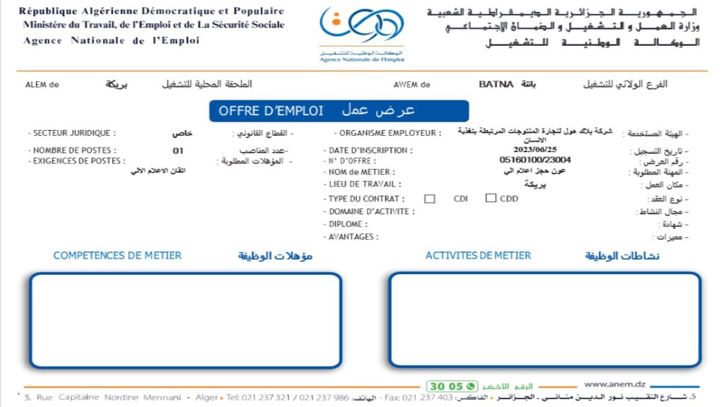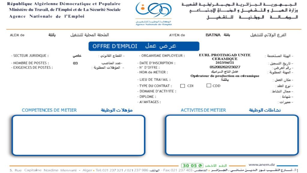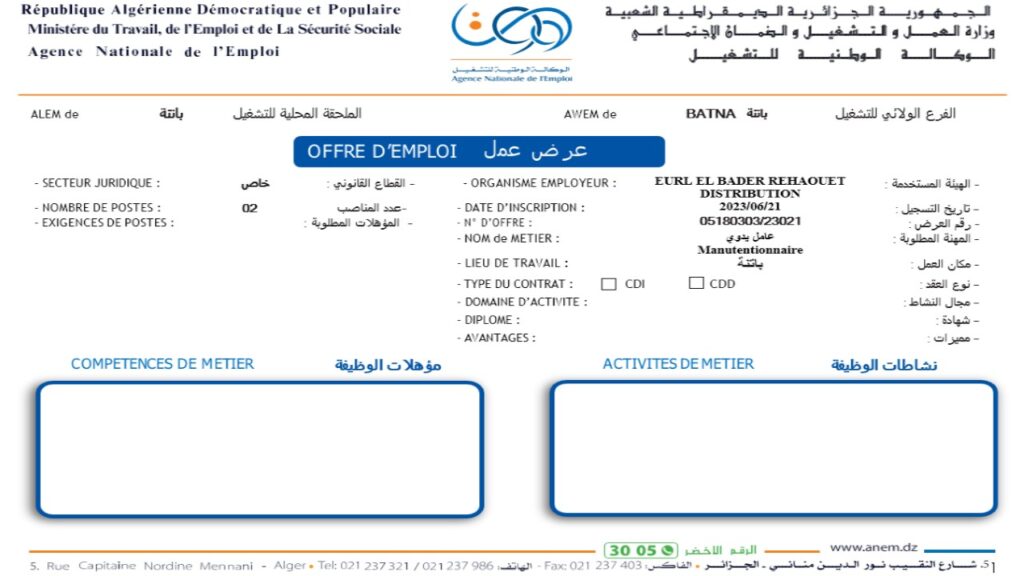 تعلن وكالة التشغيل ولاية باتنة عن فتح مناصب عمل متعددة في التخصصات المطلوبة