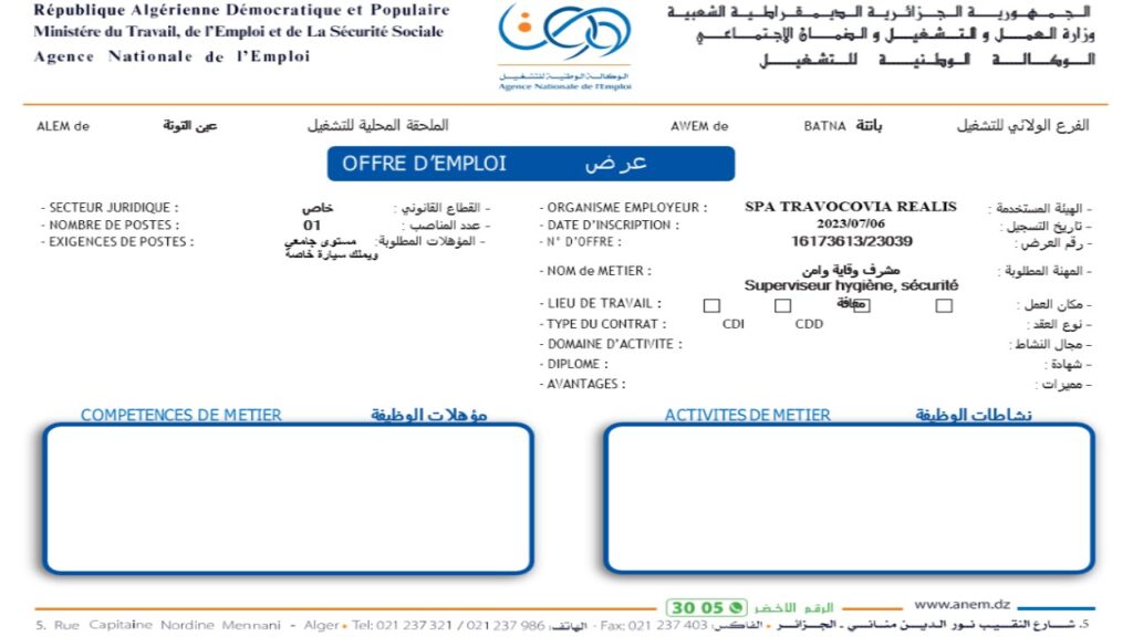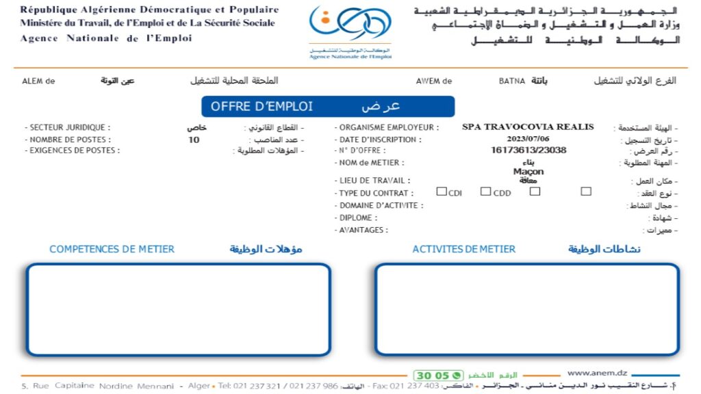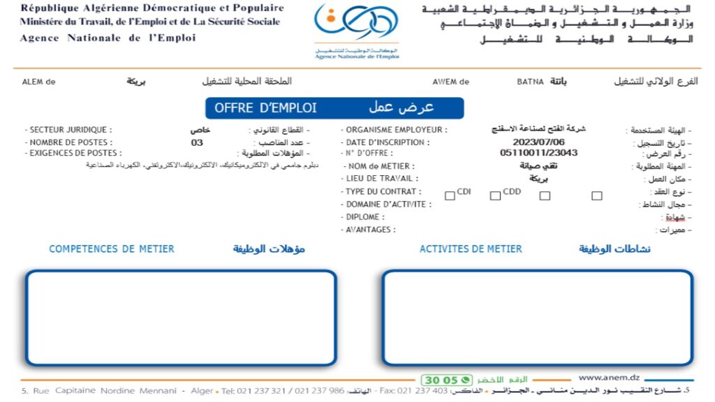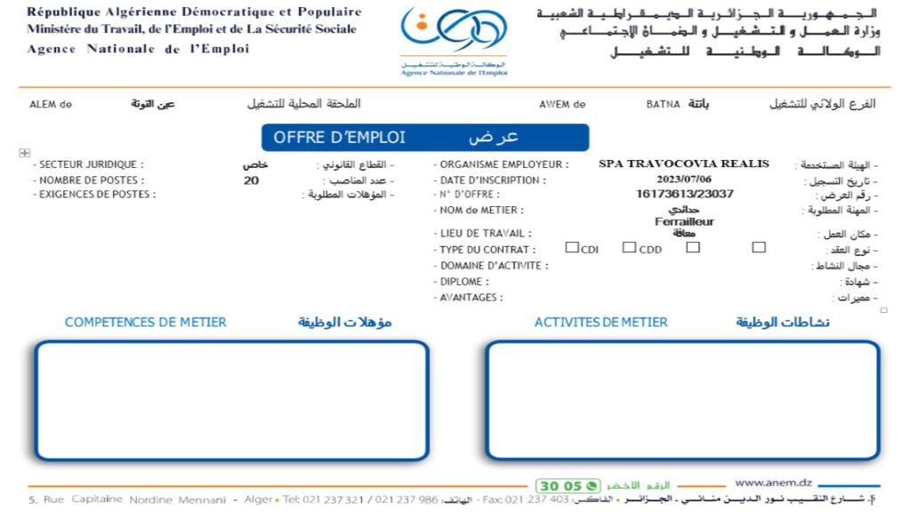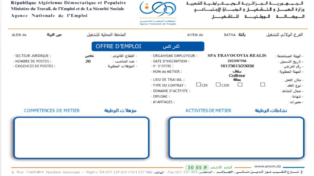 عروض عمل بوكالة التشغيل ولاية باتنة 97 منصب
