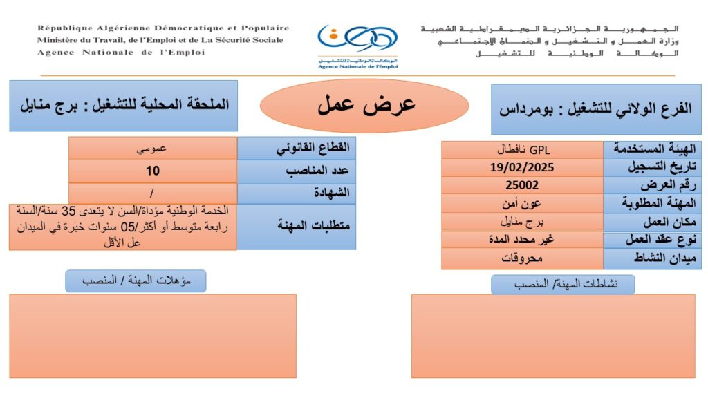 بن عبو محجوب السن 30سنة مؤدي الخدمة وطنية الخبرة حراسة وأمن في سلك درك وطني لمدة أربع سنوات 0658029912