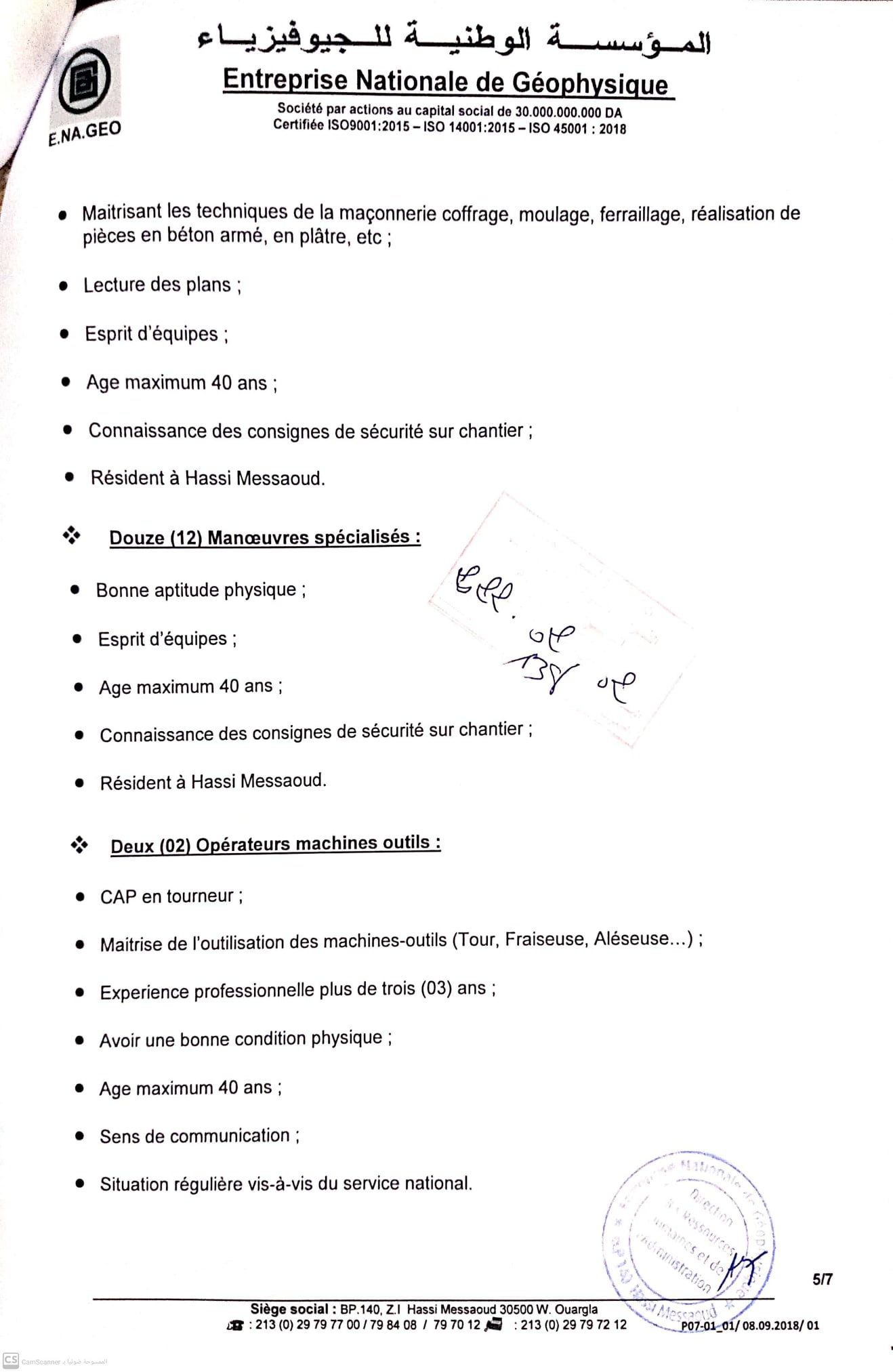 تعلن المؤسسة الوطنية للجيوفيزياء ENAGEO عن عروض عمل بعشرات الوظائف بحاسي مسعود