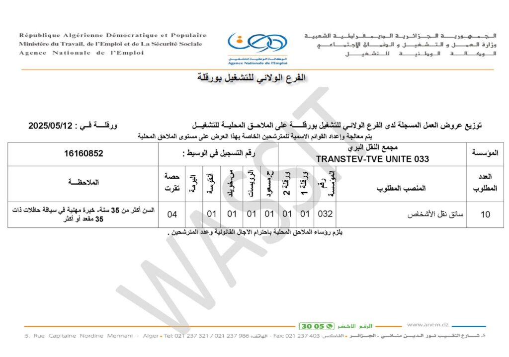 يتم توزيع عروض العمل ومعالجة وإعداد القوائم الاسمية للمترشحين الخاصة بهذا العرض على مستوى الملاحق المحلية للتشغيل.
